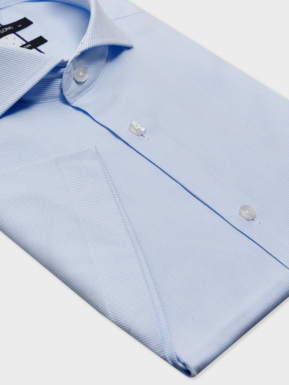 Chemise manches courtes Slim en coton façonné bleu ciel à rayures