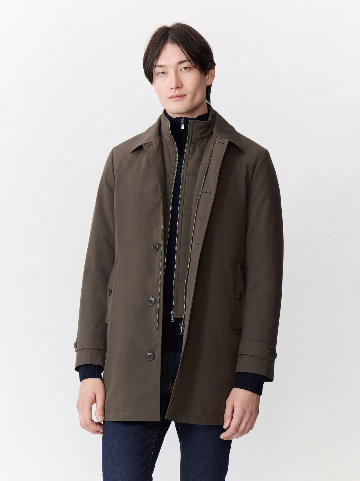 Trench droit kaki Ă parementure amovible