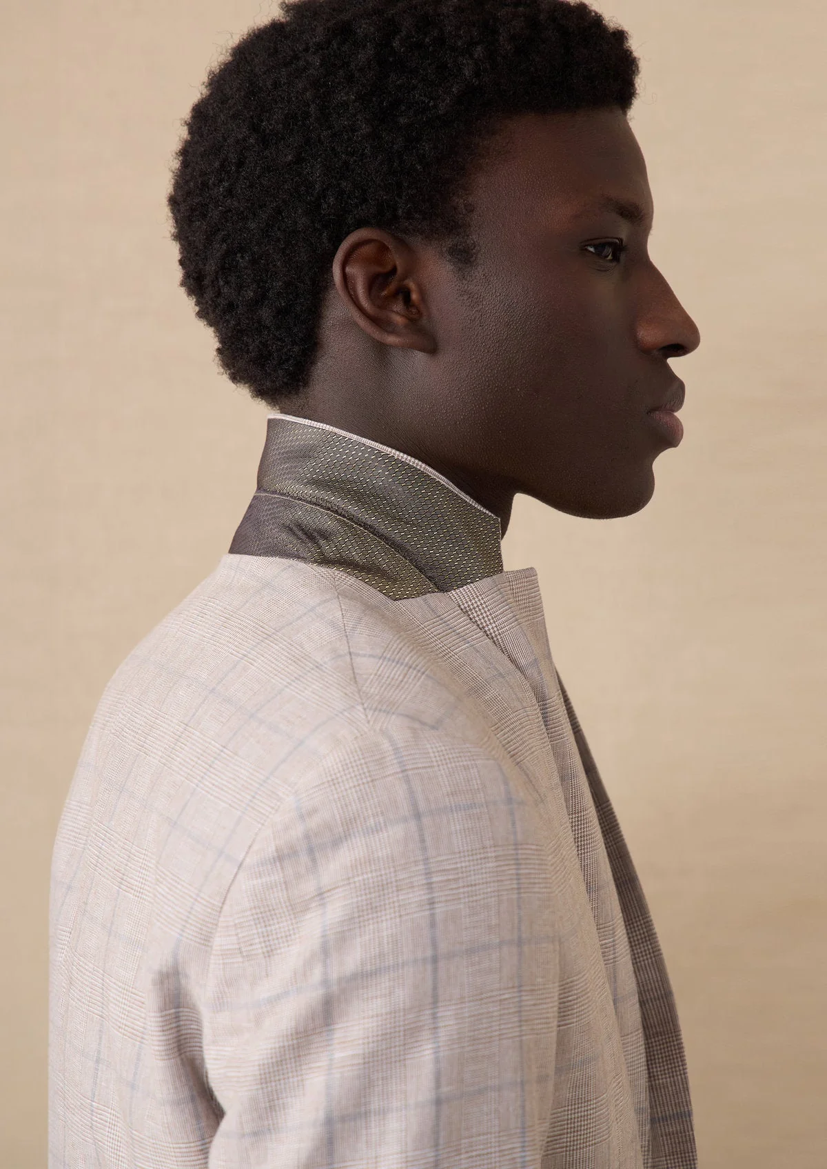 Veste coordonnable Slim en coton et lin beiges Prince de Galles